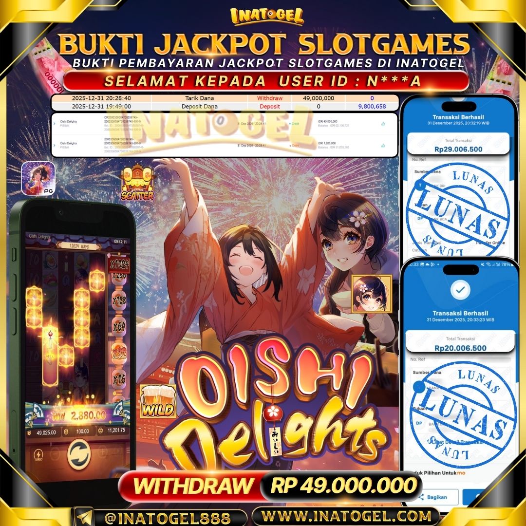 Selamat kepada User Id N***A telah berhasil mendapatkan kemenangan jackpot pada permainan SlotGames Oishi Delights sebesar Rp49,000,000,- . Inatogel situs terpercaya sejak dulu hingga saat ini , Untuk kemenangan berapapun pasti akan kami bayarkan . Jangan ragu bermain di Ina Togel . Kami pihak Inatogel Menyampaikan terima kasih kepada seluruh member Ina Togel yang telah Percaya dan setia Bersama kami bermain di Inatogel saat ini.