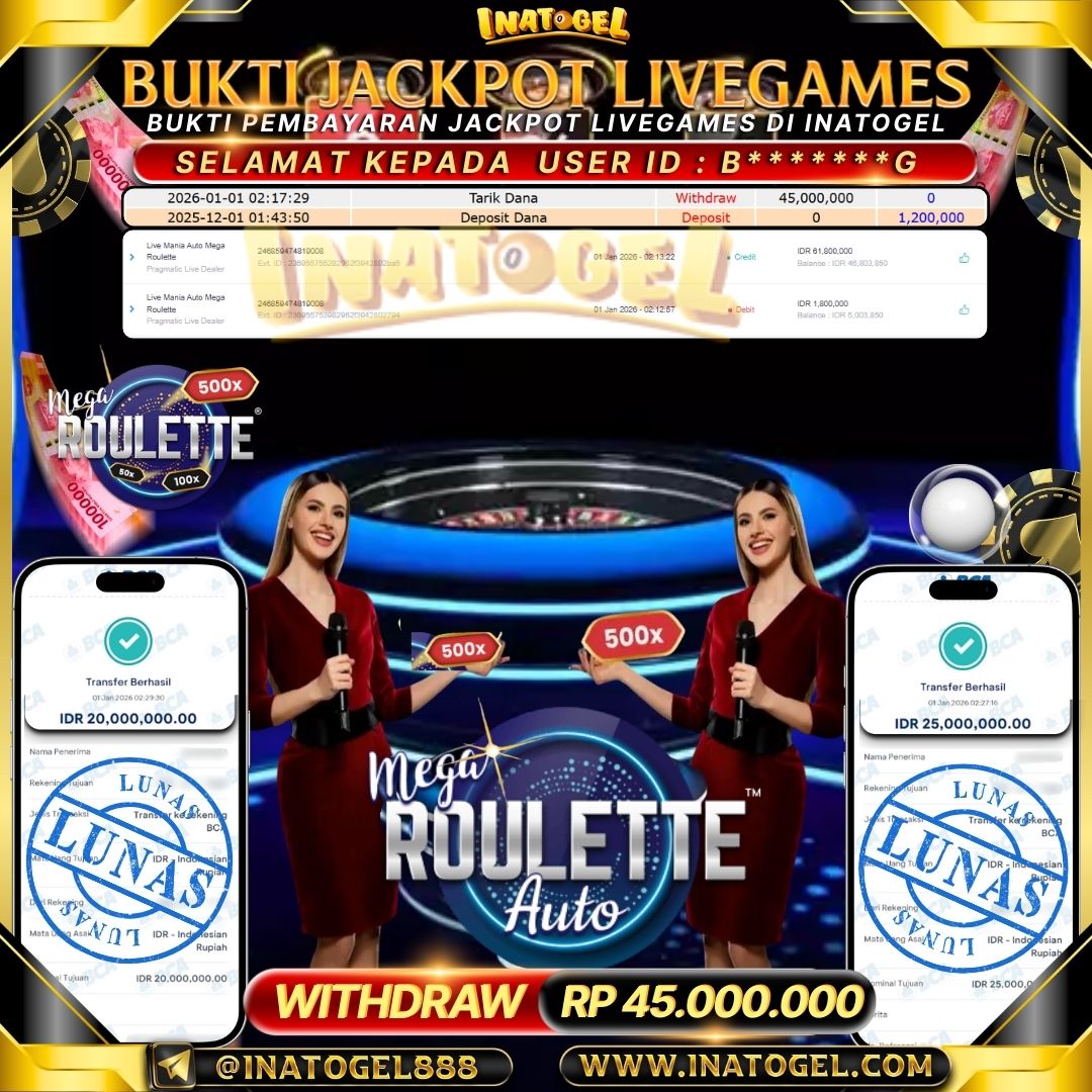 Inatogel Jackpot LiveGames Mega Roulette Auto Rp45,000,000