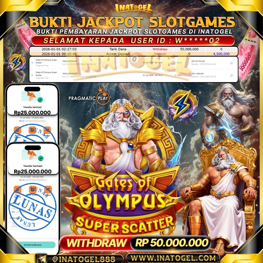 Selamat kepada User Id W*****02 telah berhasil mendapatkan kemenangan jackpot pada permainan SlotGames Gates Of Olympus Super Scatter sebesar Rp50,000,000,- . Inatogel situs terpercaya sejak dulu hingga saat ini , Untuk kemenangan berapapun pasti akan kami bayarkan . Jangan ragu bermain di Ina Togel . Kami pihak Inatogel Menyampaikan terima kasih kepada seluruh member Ina Togel yang telah Percaya dan setia Bersama kami bermain di Inatogel saat ini.