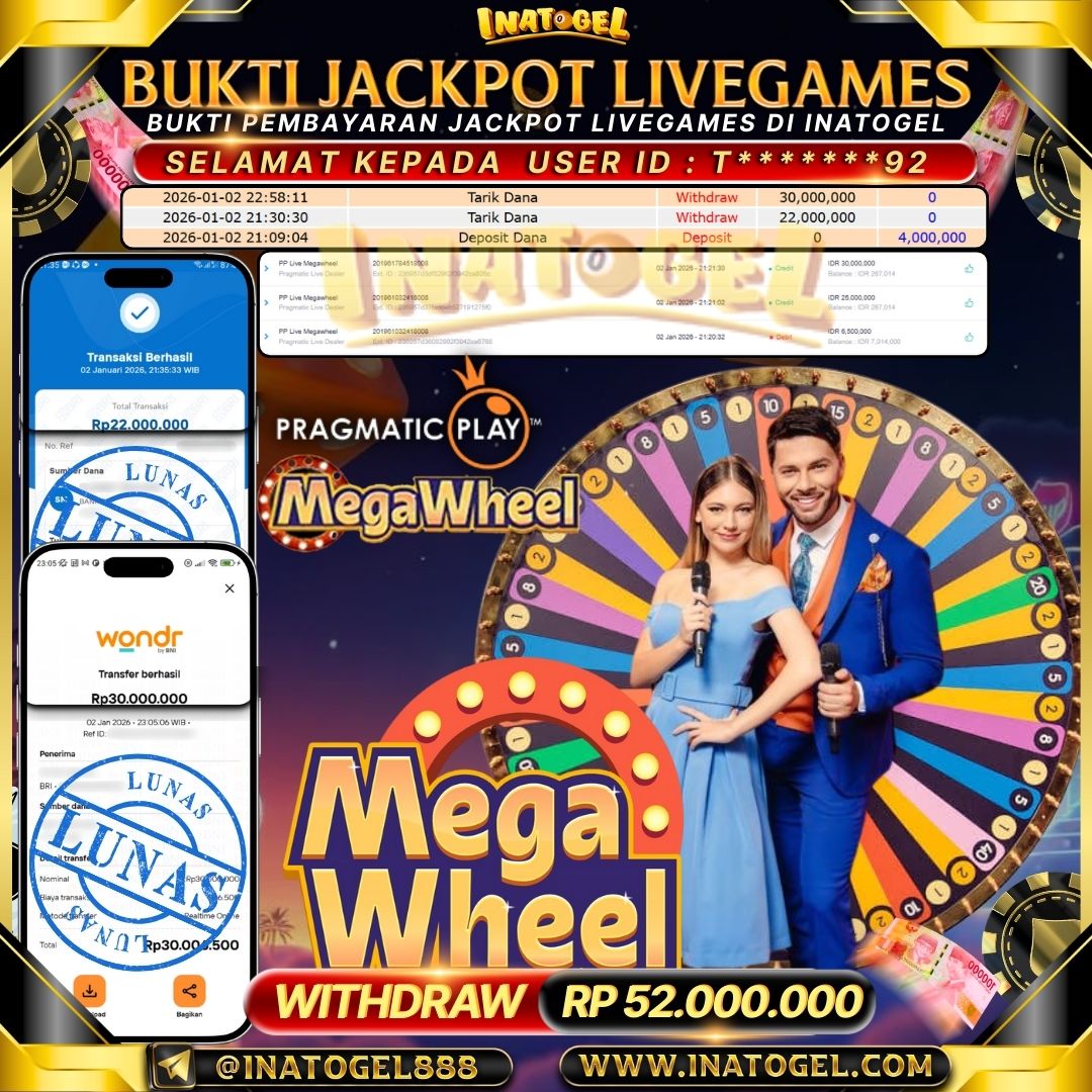 Inatogel Jackpot LiveGames Mega Wheel Rp52,000,000