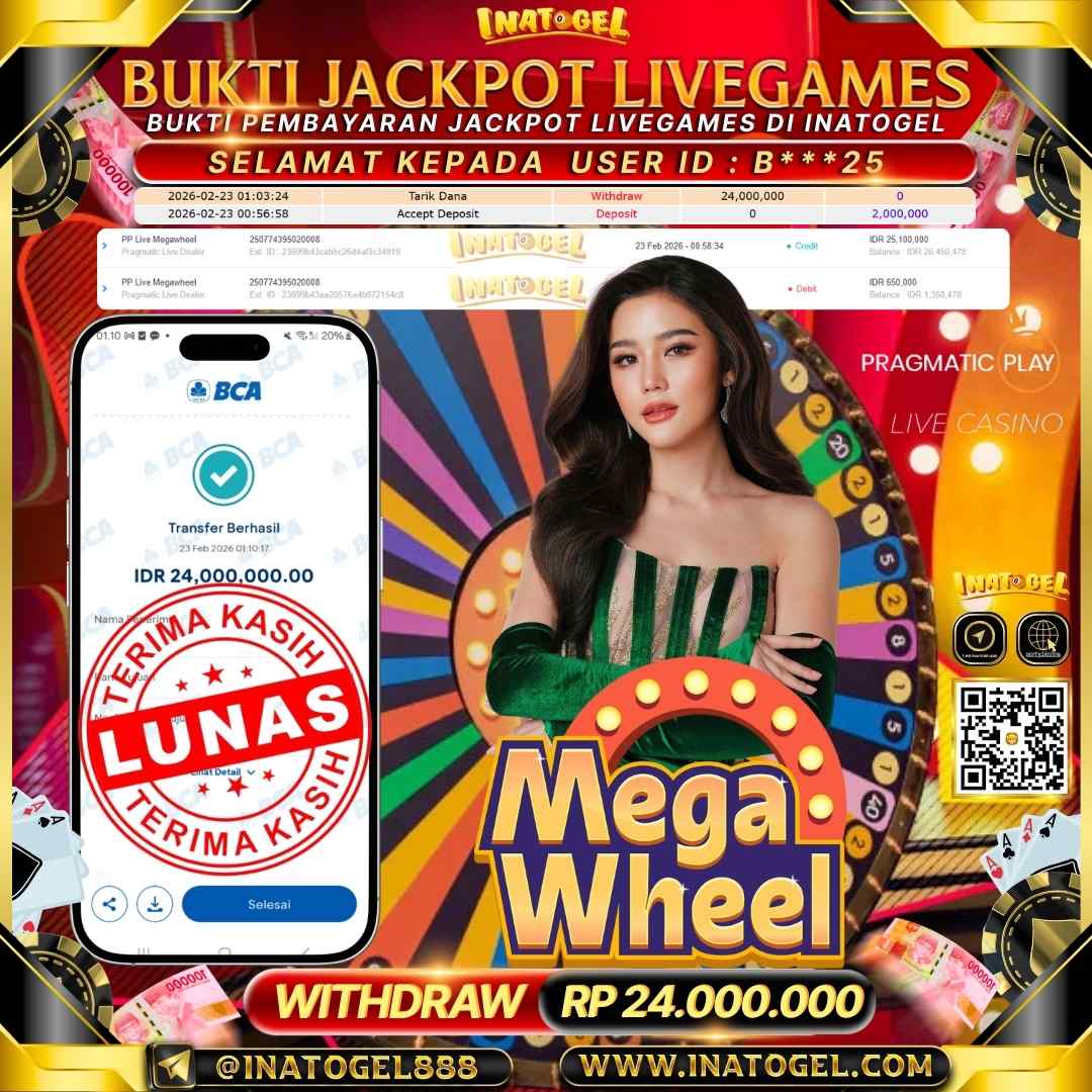 Inatogel Jackpot Live Game Mega Wheel Rp 24,000,000