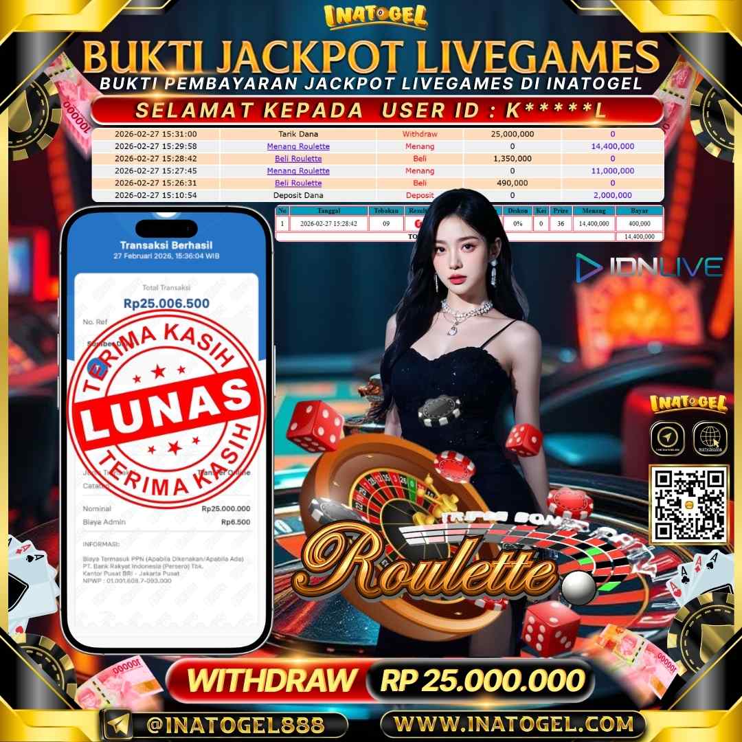 Inatogel Jackpot Live Game Roulette Rp 25,000,000