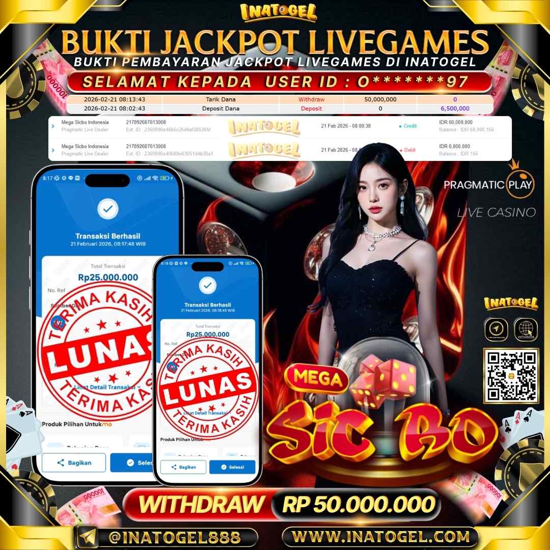 Inatogel Jackpot Live Game Mega Sicbo Indonesia Rp 50,000,000