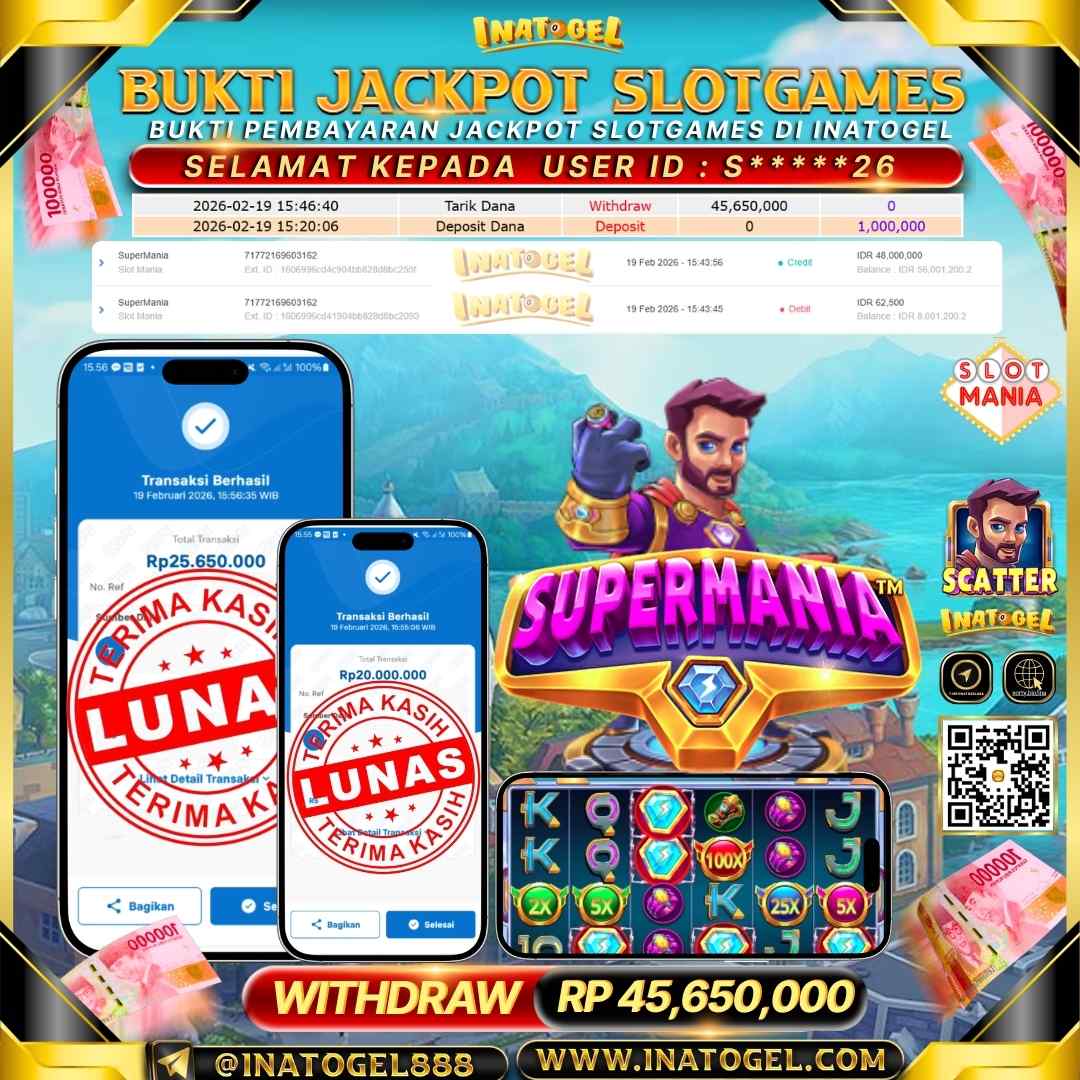 Inatogel Jackpot Slot Games SuperMania Rp 45,650,000