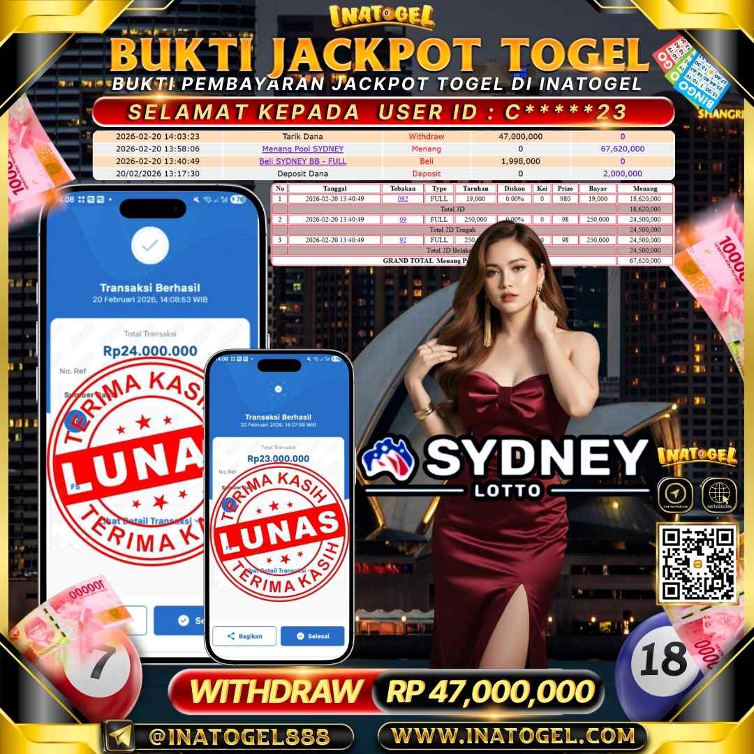 Inatogel Jackpot Togel Sydney Lotto Rp 47,000,000