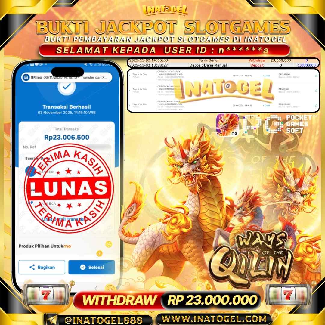 Inatogel Jackpot SlotGame Ways Of The Qilin Rp23,000,000