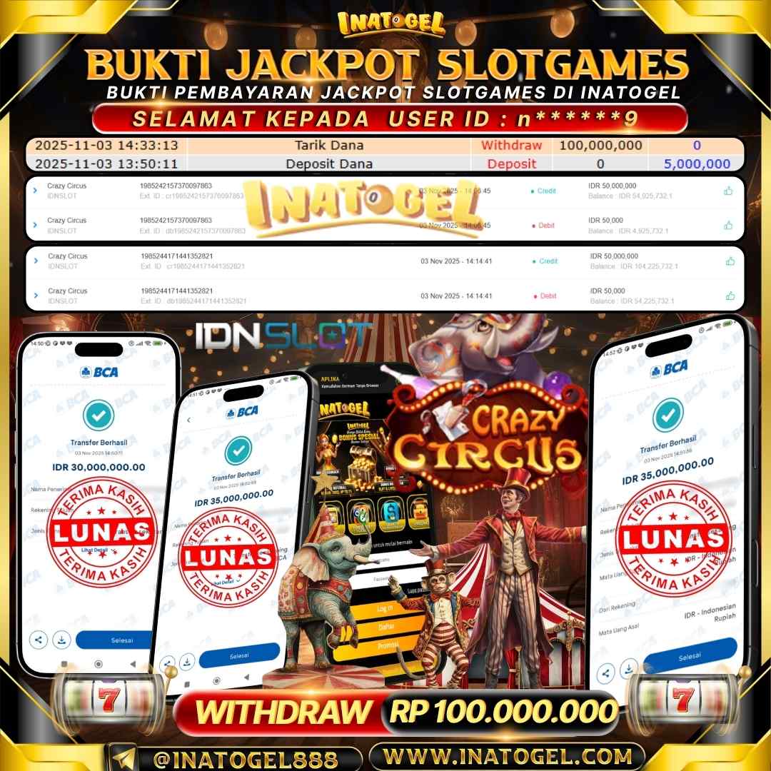 Inatogel Jackpot SlotGame Crazy Circus Rp100,000,000