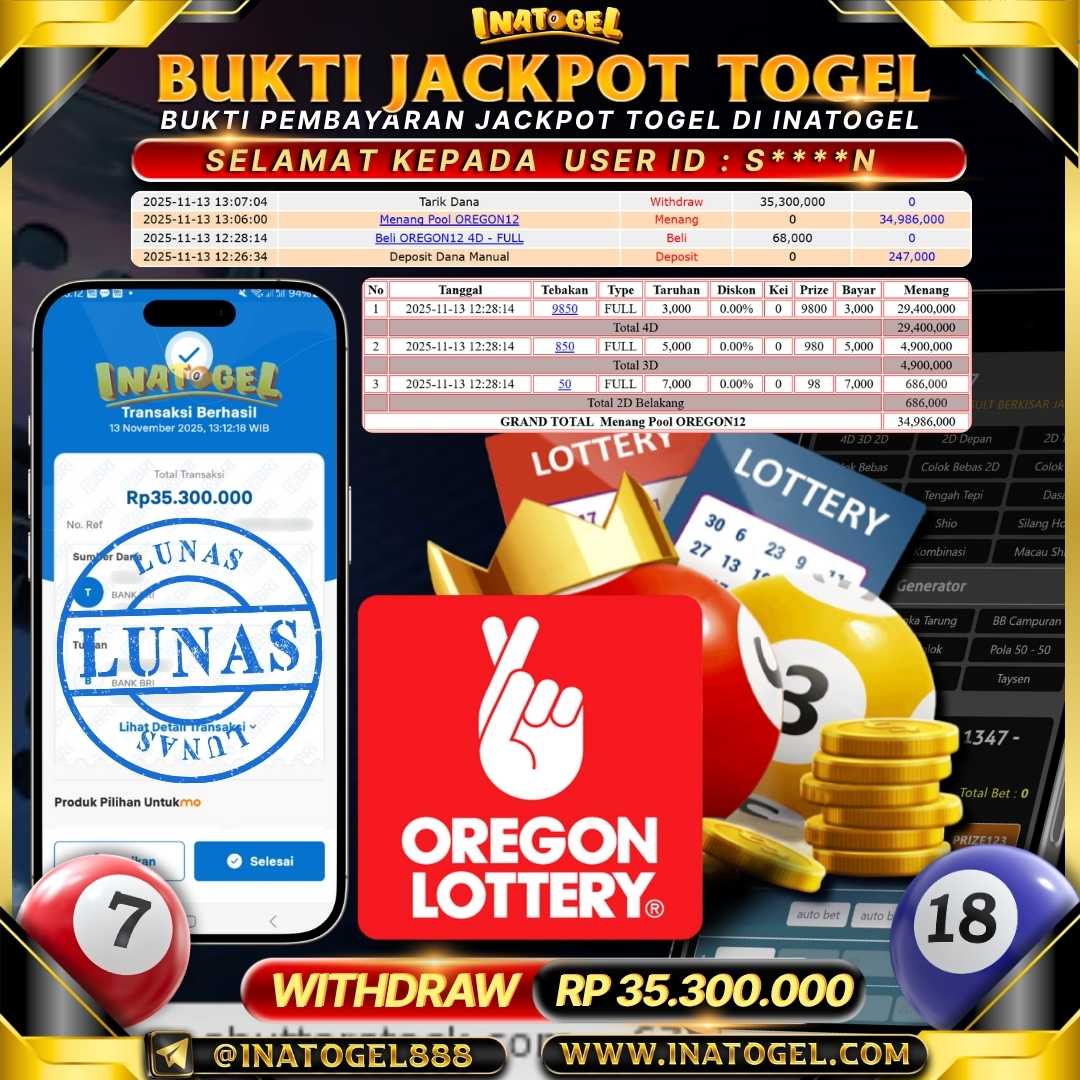 Inatogel Jackpot Togel Pool OREGON12 Rp35,300,000