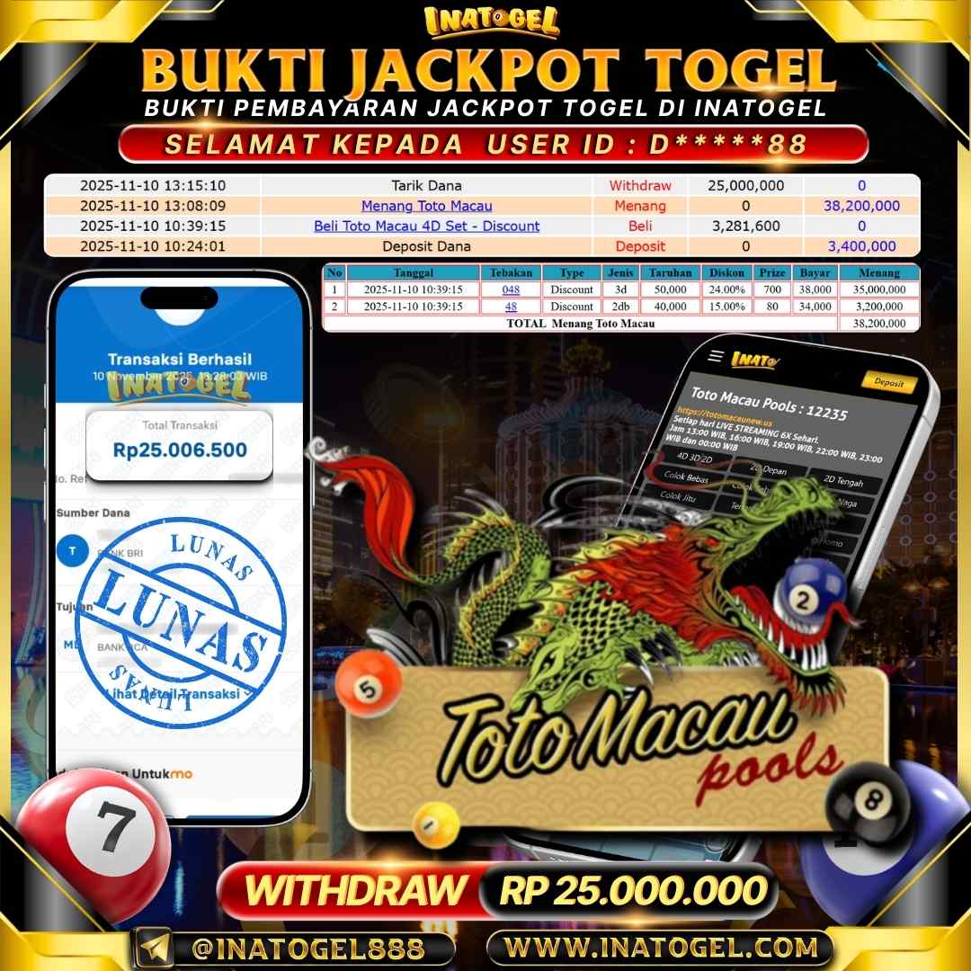 Inatogel Jackpot Togel Toto Macau Rp25,000,000