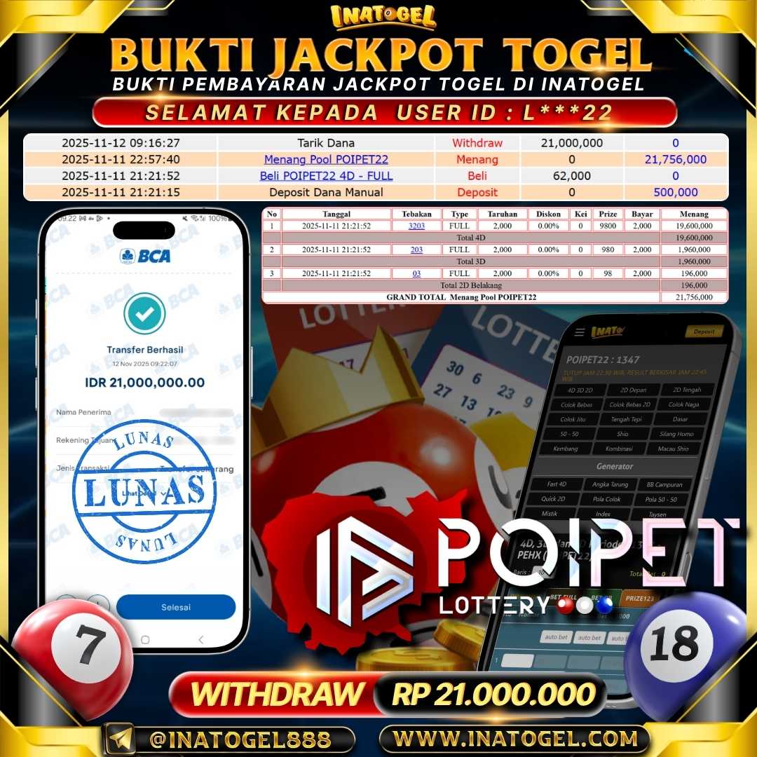 Inatogel Jackpot Togel POIPET22 4D Rp21,000,000