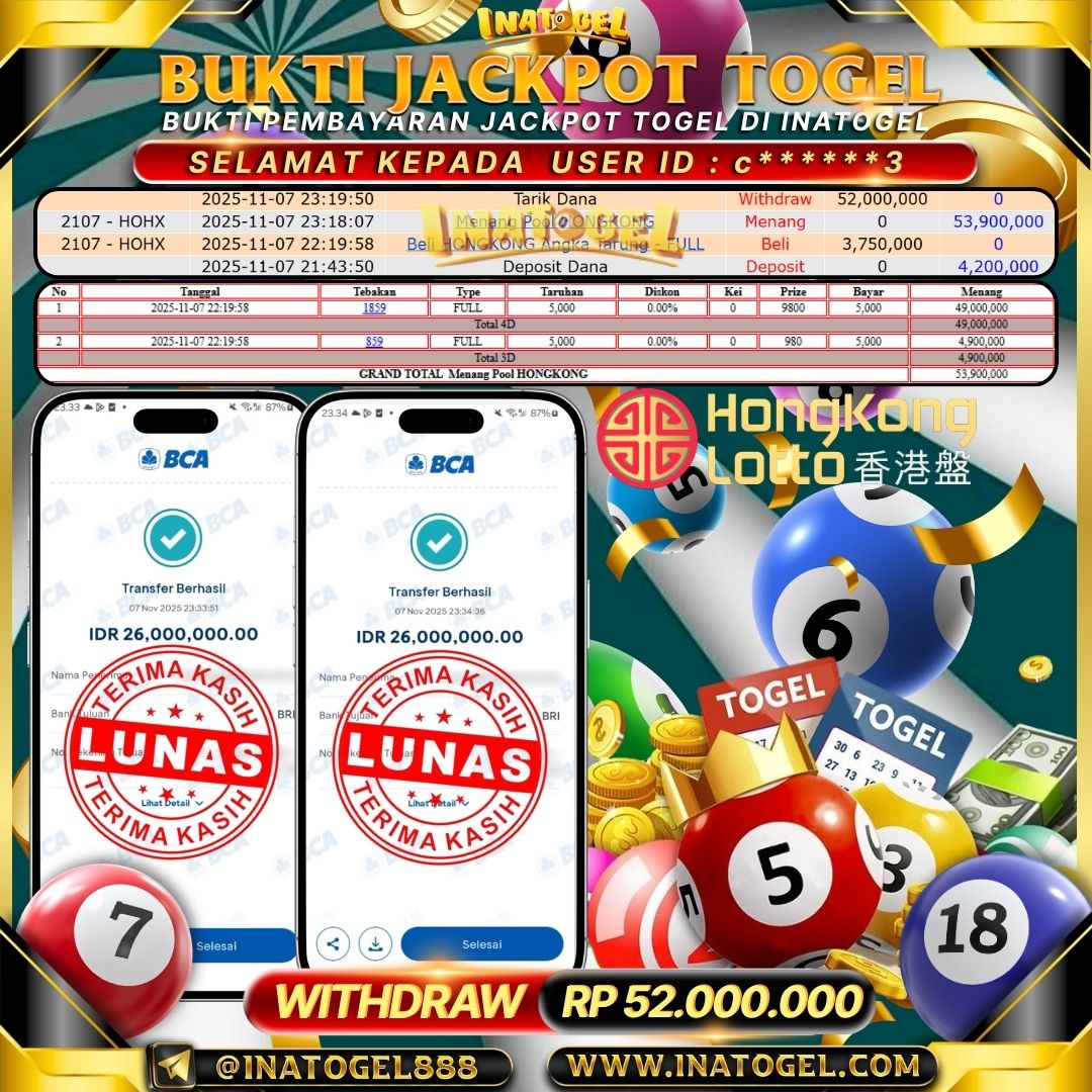 Inatogel Jackpot Togel Hongkong Lotto Rp52,000,000