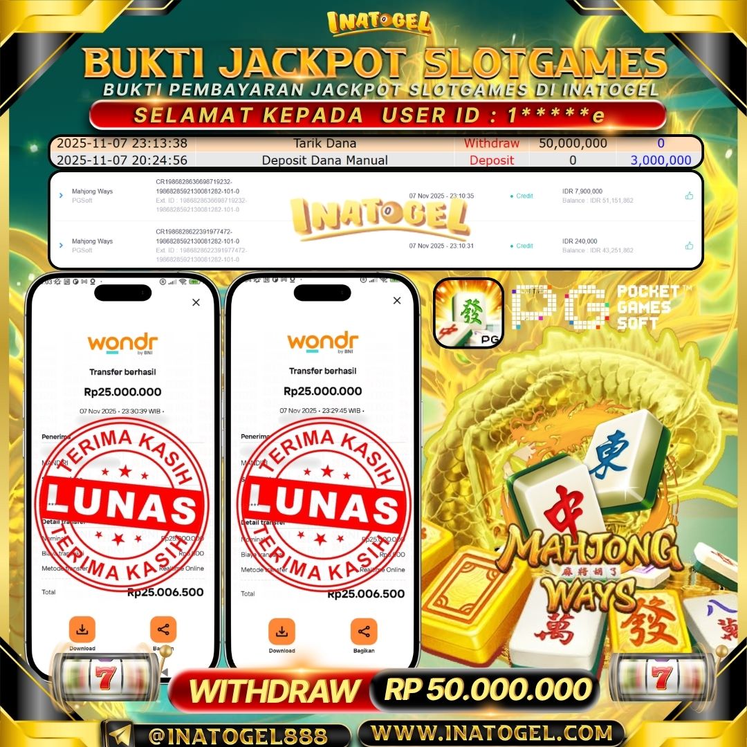 Inatogel Jackpot SlotGame Mahjong Ways Rp50,000,000