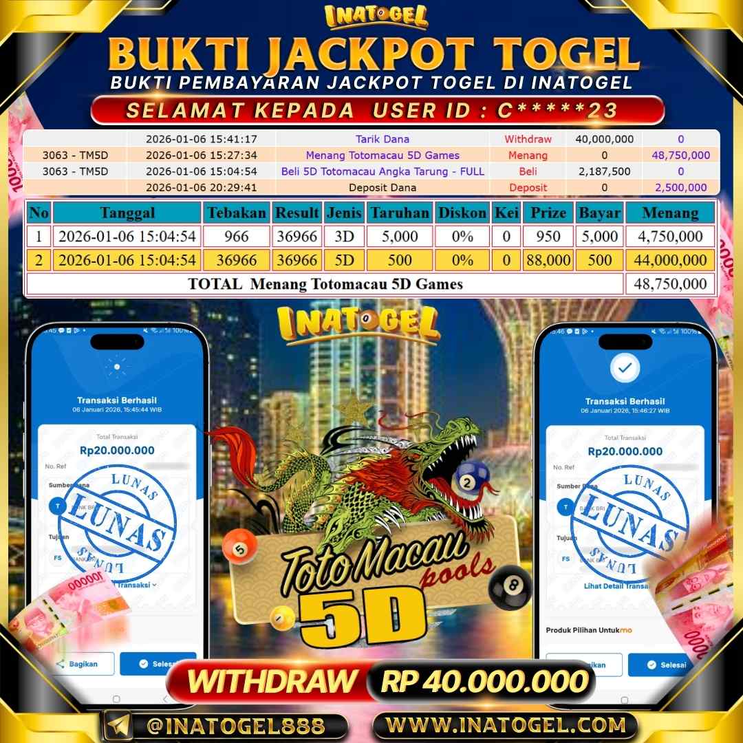 Inatogel Jackpot Togel Toto Macau 5D Rp40,000,000