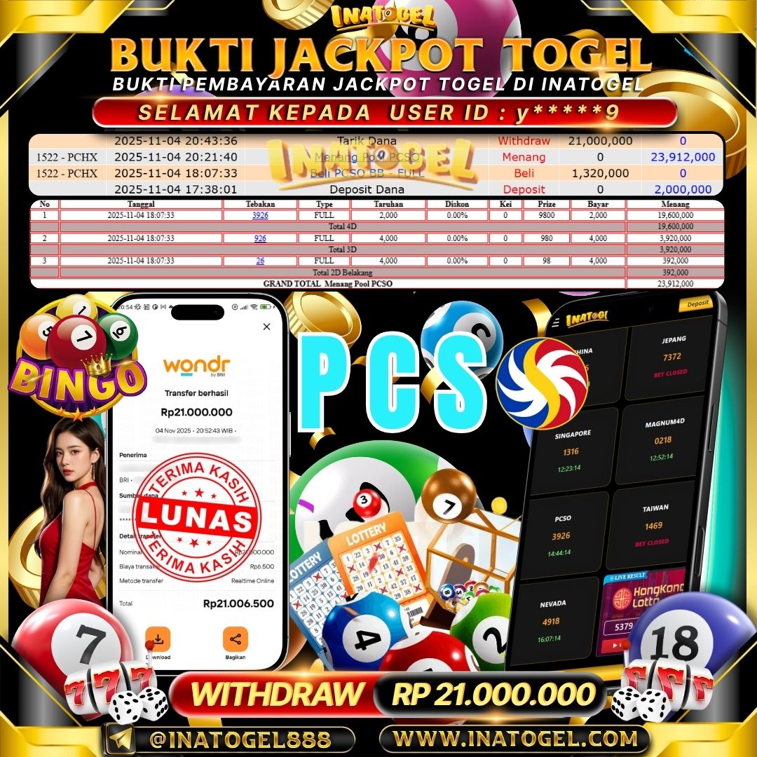 Inatogel Jackpot Togel PCSO Rp21,000,000