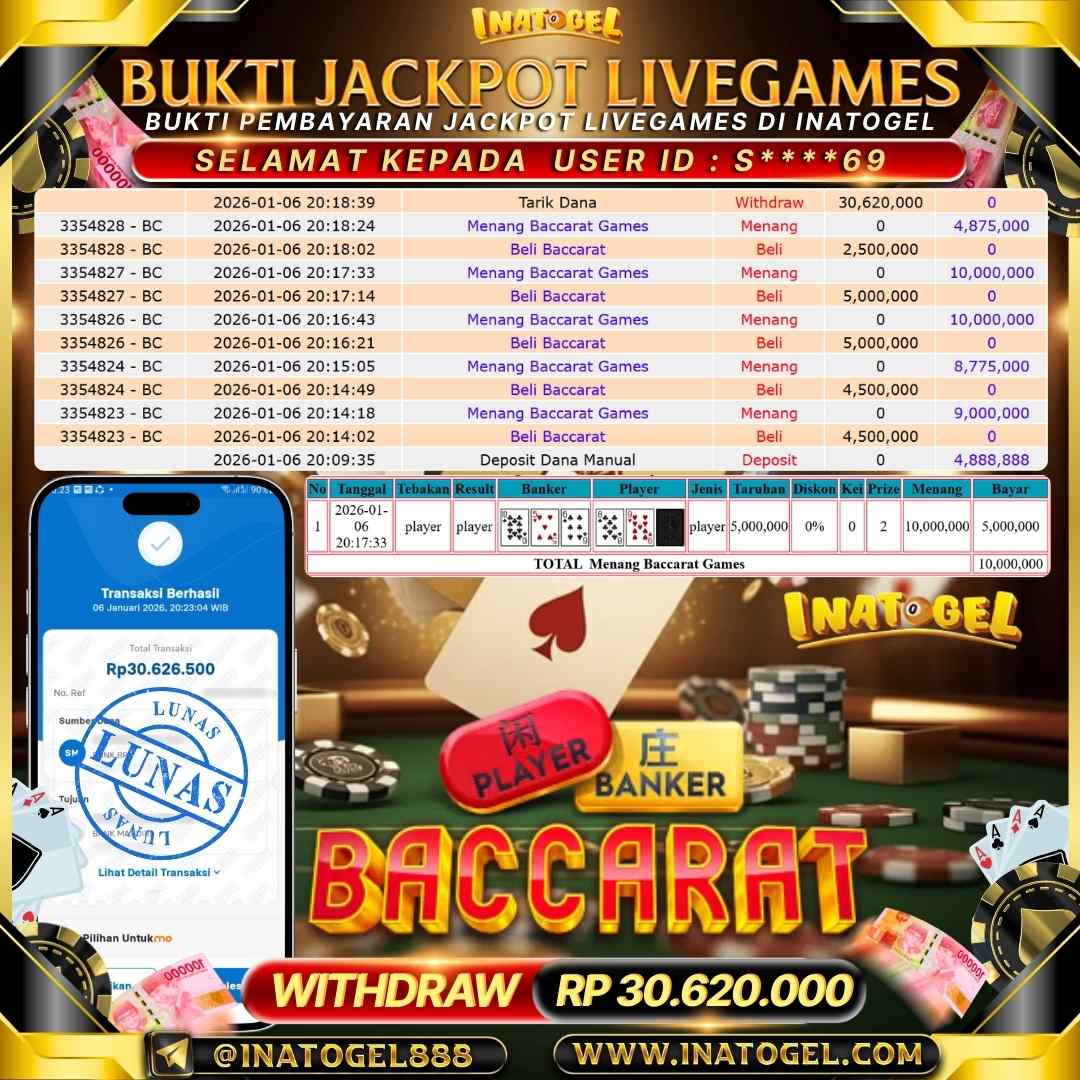 Inatogel Jackpot LiveGames Baccarat Rp30,620,000