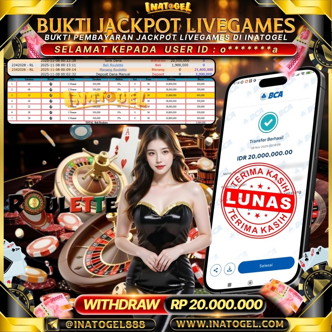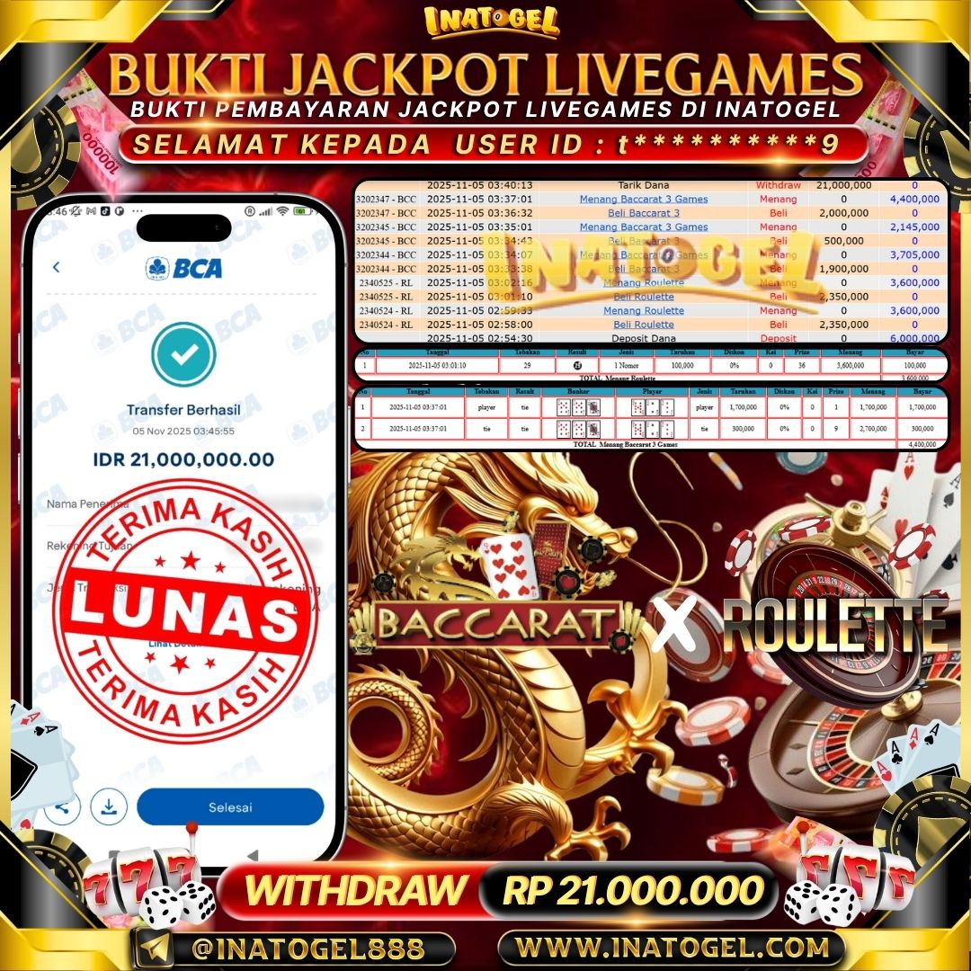 Inatogel Jackpot LiveGame Baccarat & Roulette Rp21,000,000