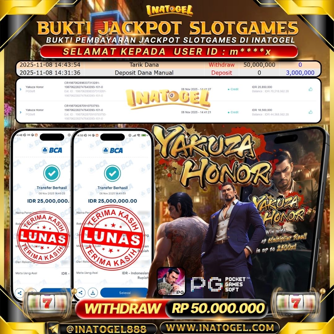Inatogel Jackpot SlotGame Yakuza Honor Rp50,000,000