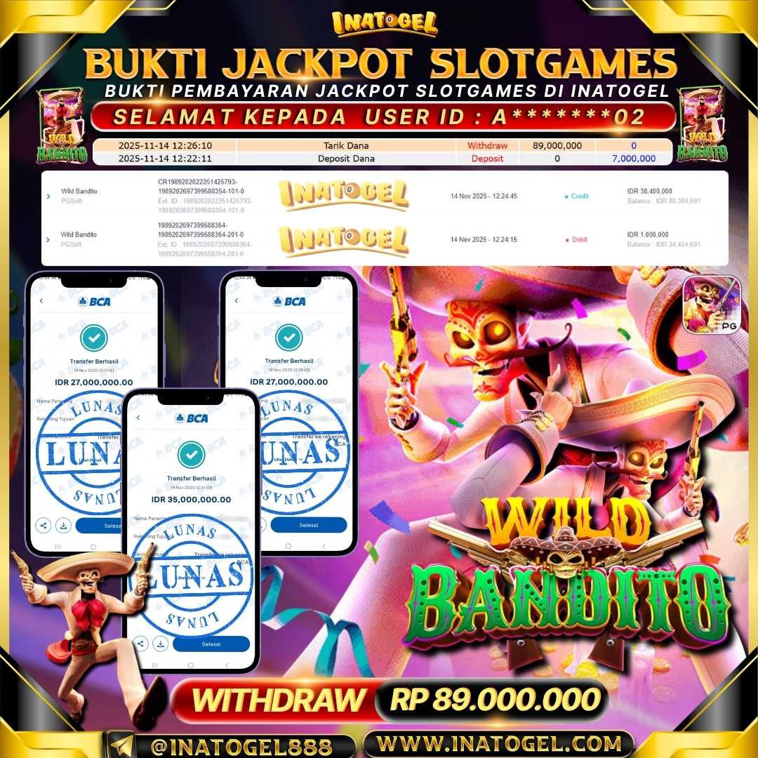 Inatogel Jackpot SlotGame Wild Bandito Rp89,000,000