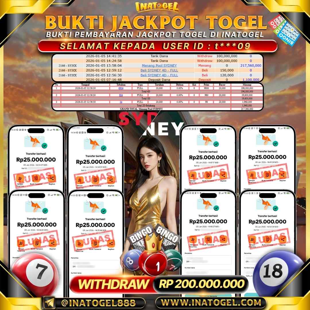 Inatogel Jackpot TOGEL SYDNEY LOTTO Rp 200.000.000,-