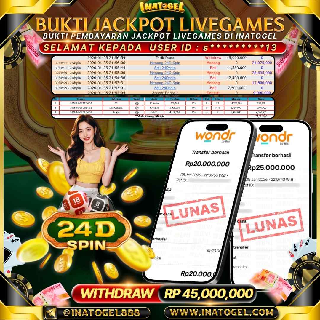 Inatogel Jackpot Live Games 24D Spin Rp 45,000,000