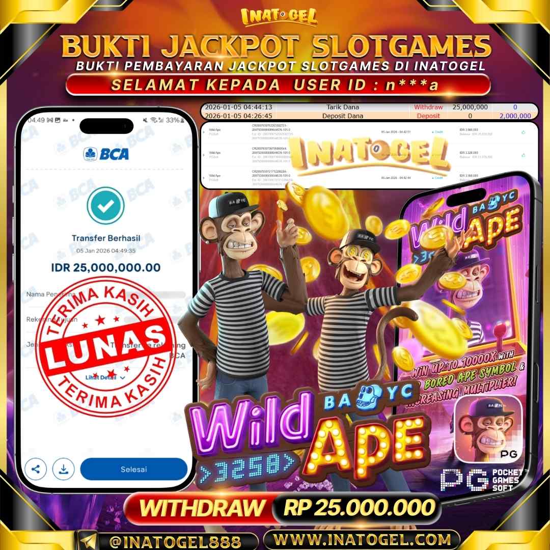 Inatogel Jackpot SlotGame Wild Ape Rp25.000.000,-