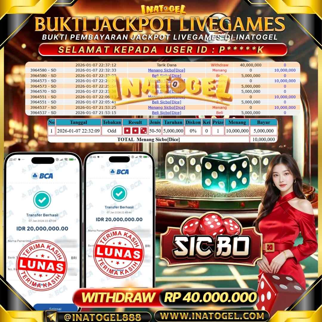 Inatogel Jackpot LiveGames Sicbo Dice Rp40,000,000