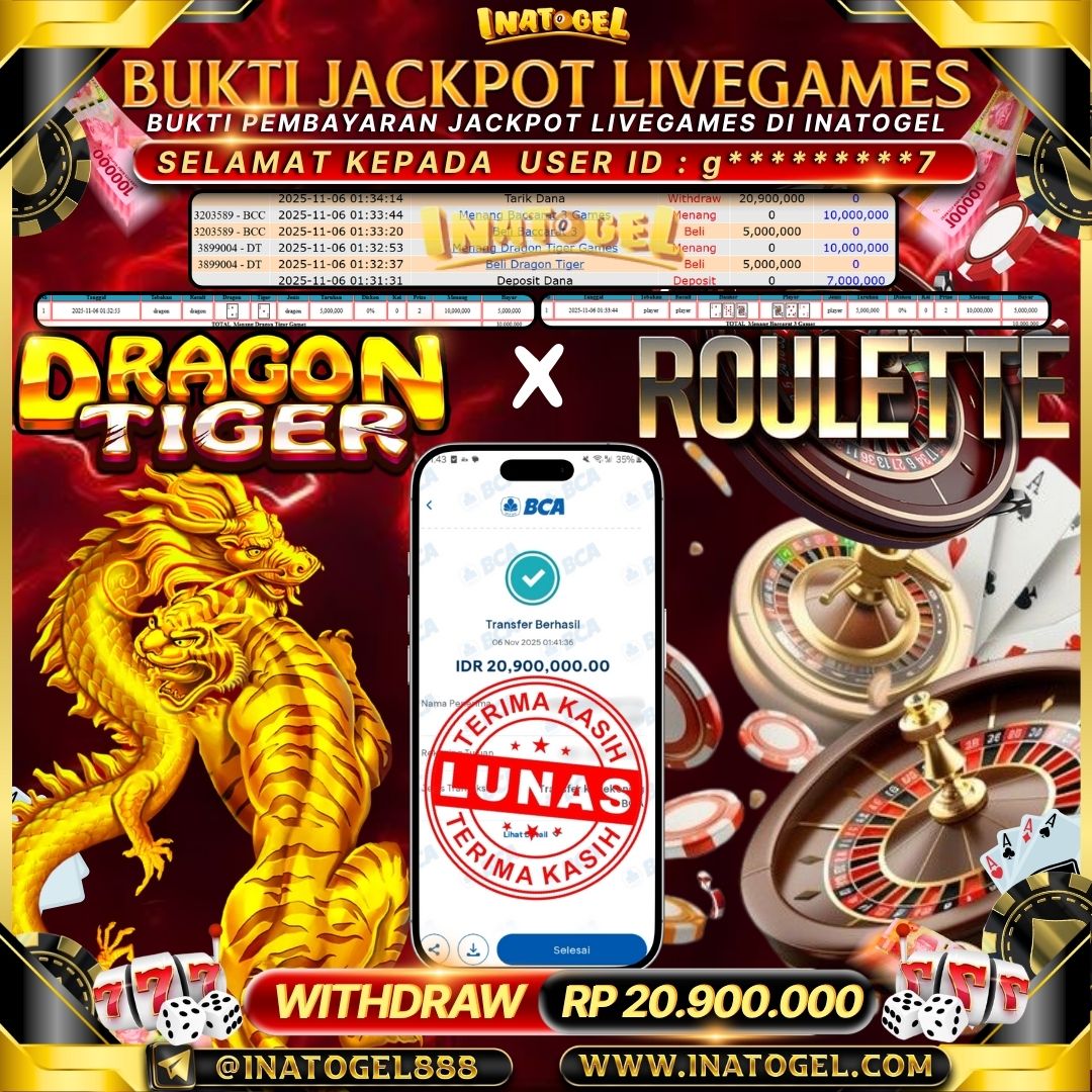 Inatogel Jackpot LiveGame Dragon Tiger & Roulette Rp20,900,000