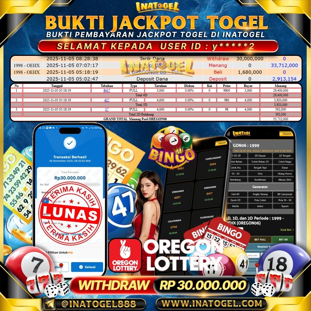 Inatogel Jackpot Togel OREGON06 Rp30,000,000