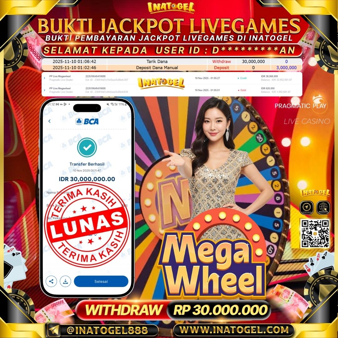 Inatogel Jackpot Live Games PP Live MegaWheel Rp30,000,000