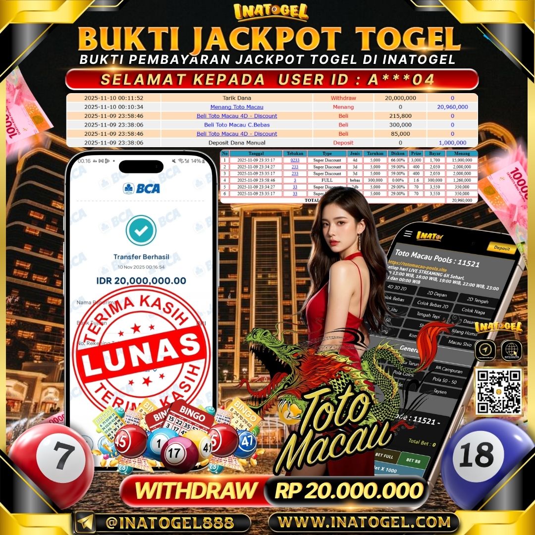 Inatogel Jackpot Togel Toto Macau Rp20,000,000