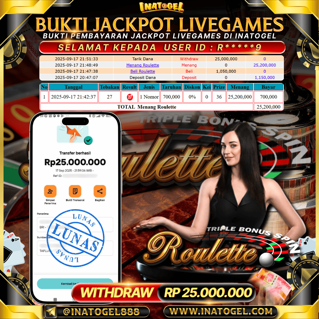 Inatogel Jackpot LiveGame Roulette Rp25,000,000