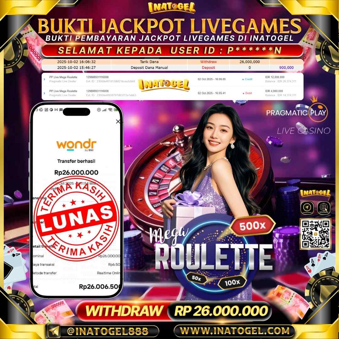 Inatogel Jackpot LiveGame PP Live Mega Roulette Rp26,000,000