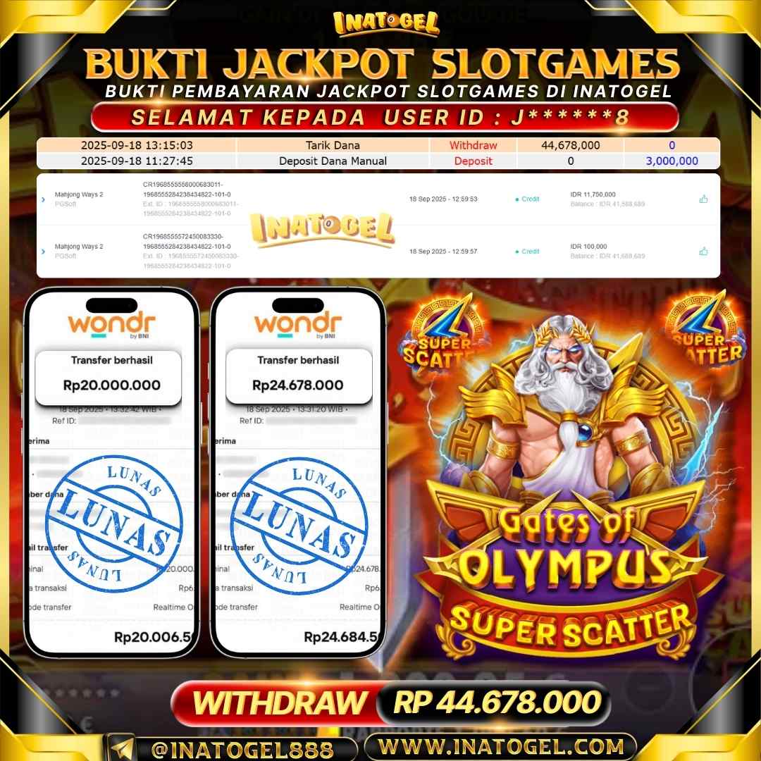 Inatogel Jackpot SlotGame Gates of Olympus Super Scatter Rp44,678,000