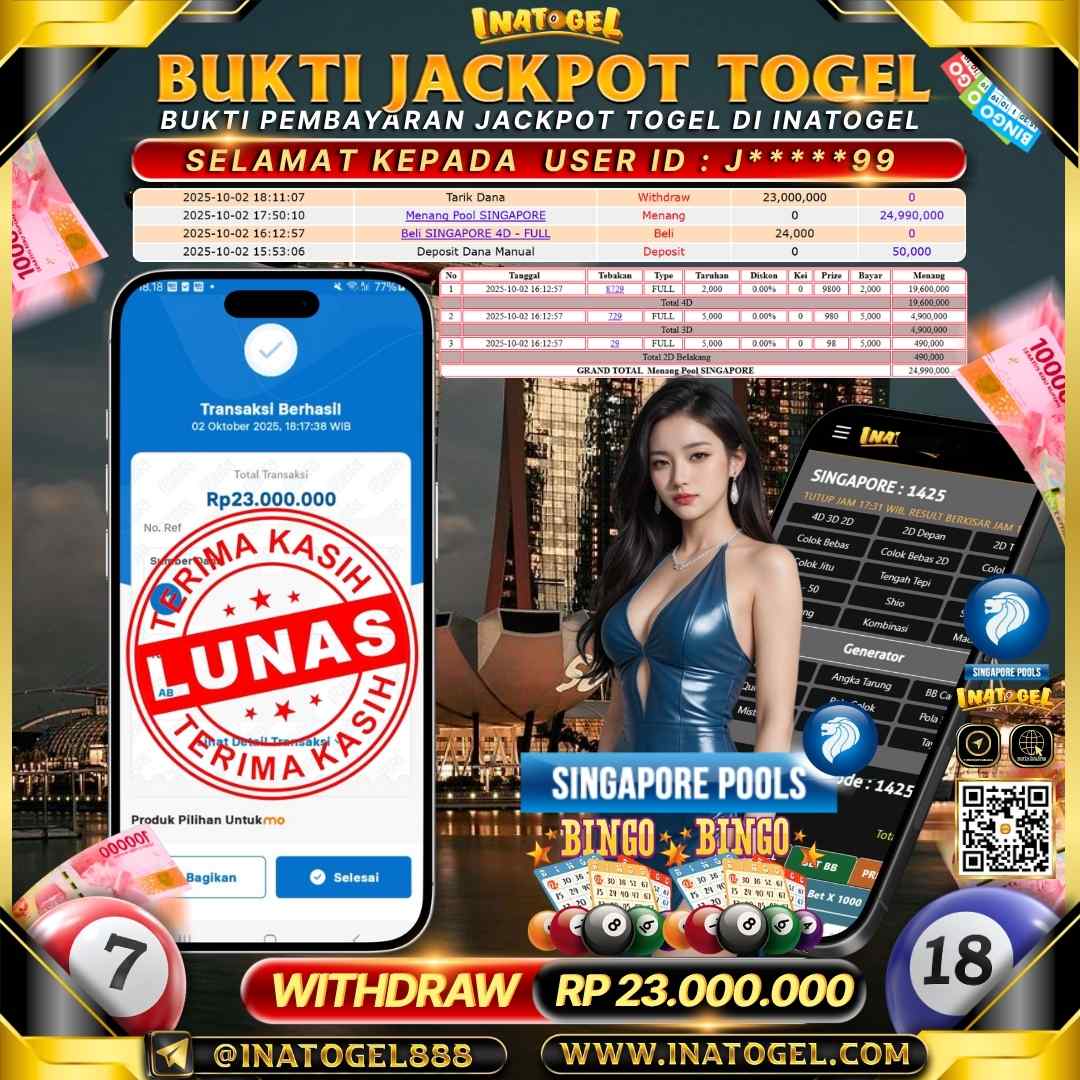 Inatogel Jackpot Togel Singapore Pools Rp23,000,000