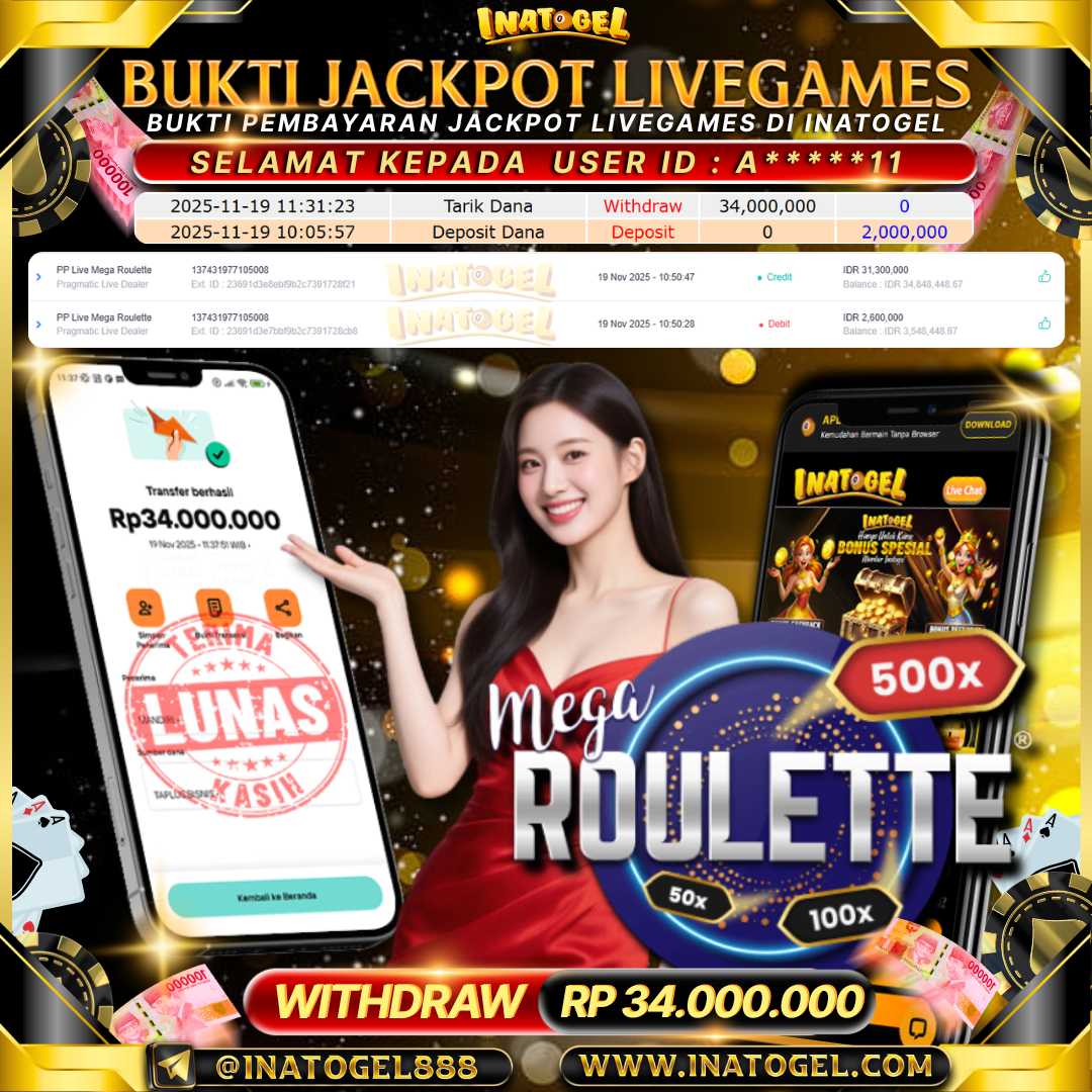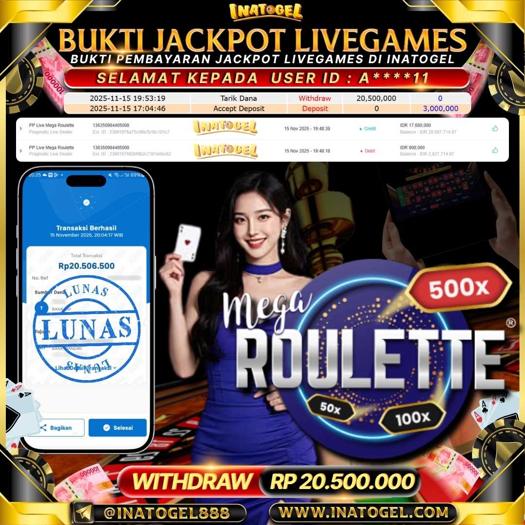 Inatogel Jackpot Live Games Mega Roulette Rp34,000,000