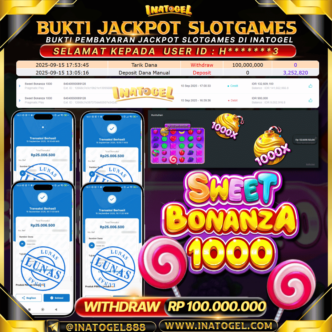 Inatogel Jackpot SlotGame Sweet Bonanza 1000 Rp100,000,000