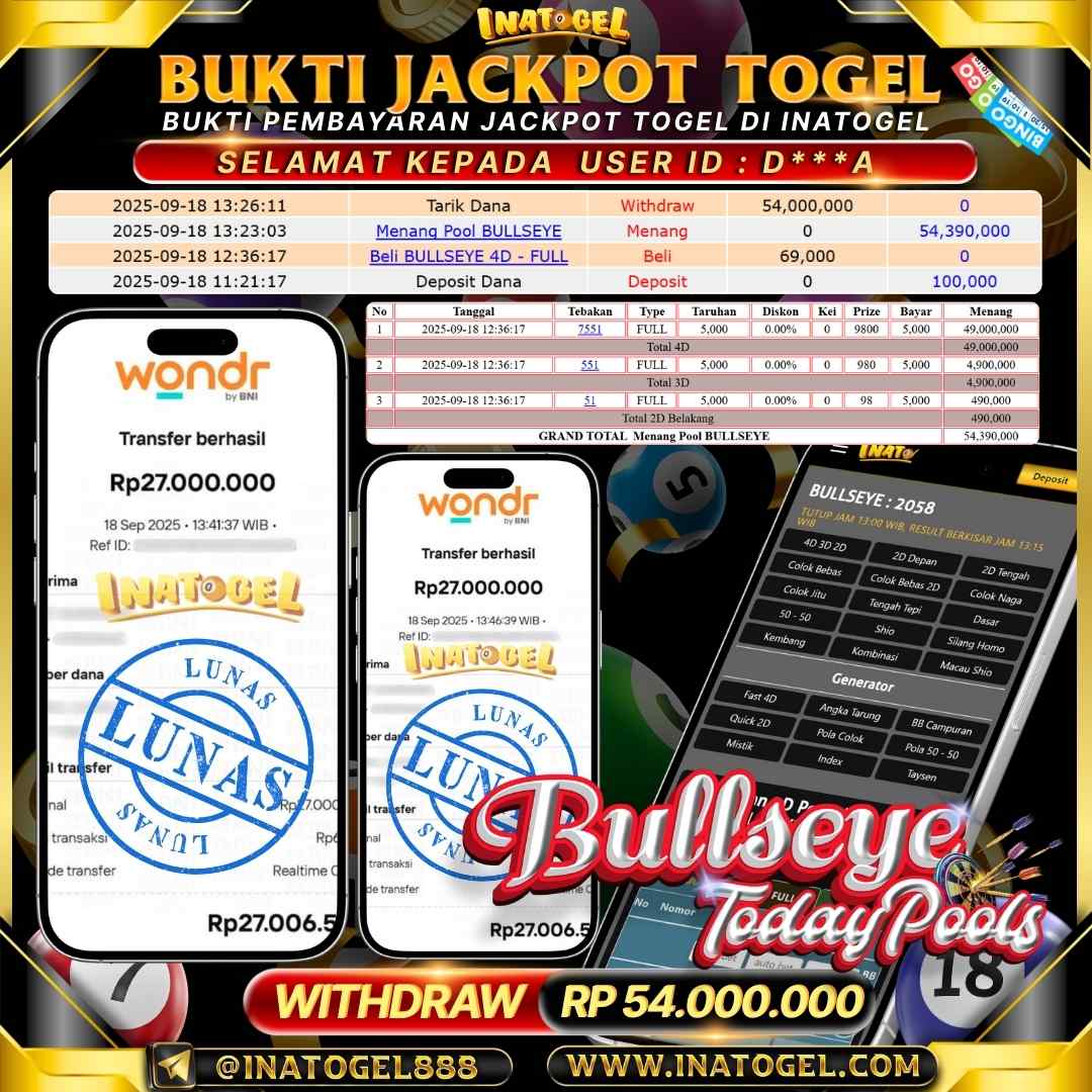 Inatogel Jackpot Togel Bullseye Pools Rp54,000,000