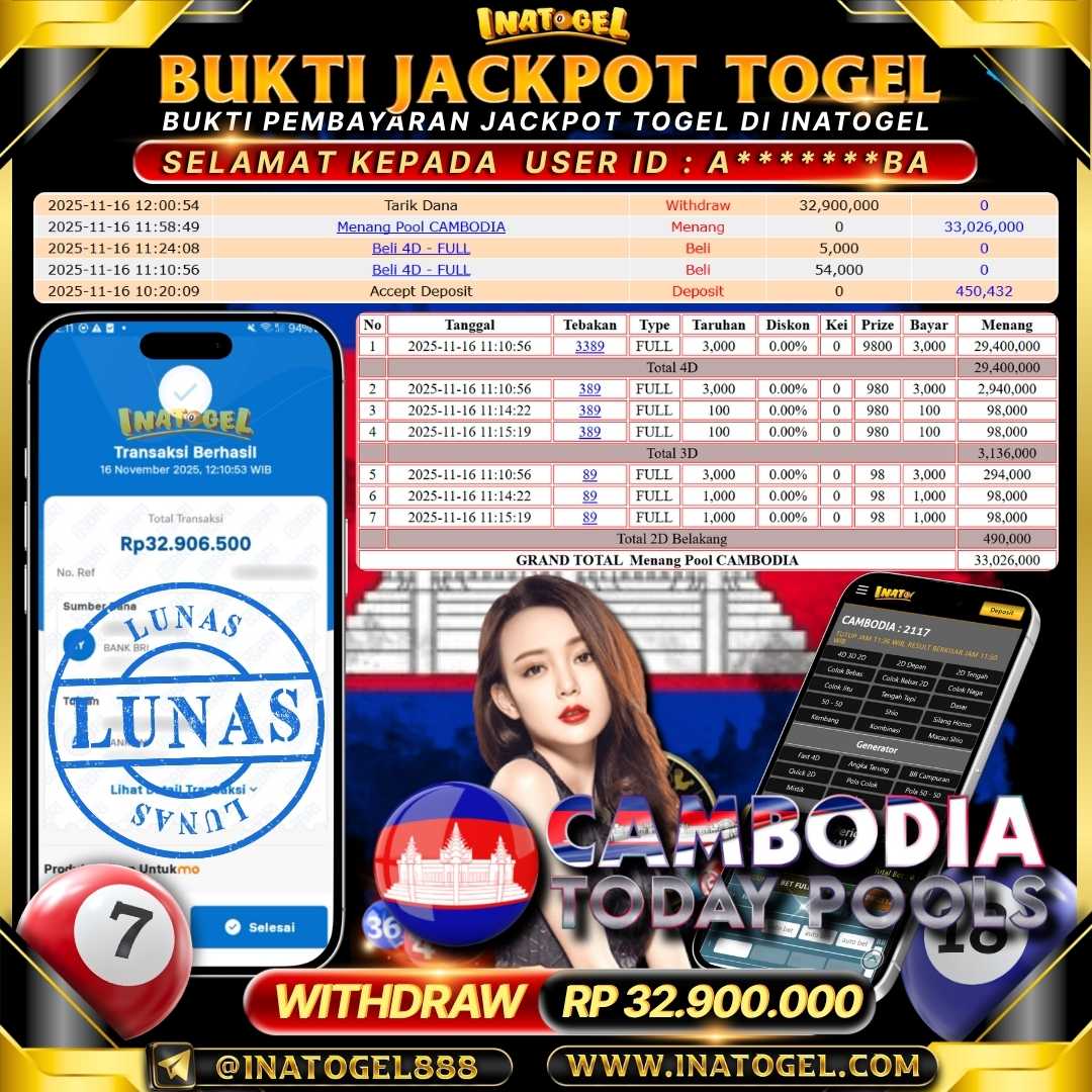 Inatogel Jackpot Togel Pool CAMBODIA Rp32,900,000