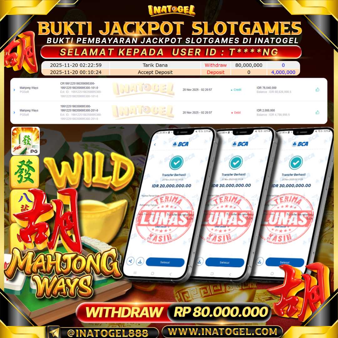 Inatogel Jackpot SlotGame Mahjong Ways Rp80,000,000