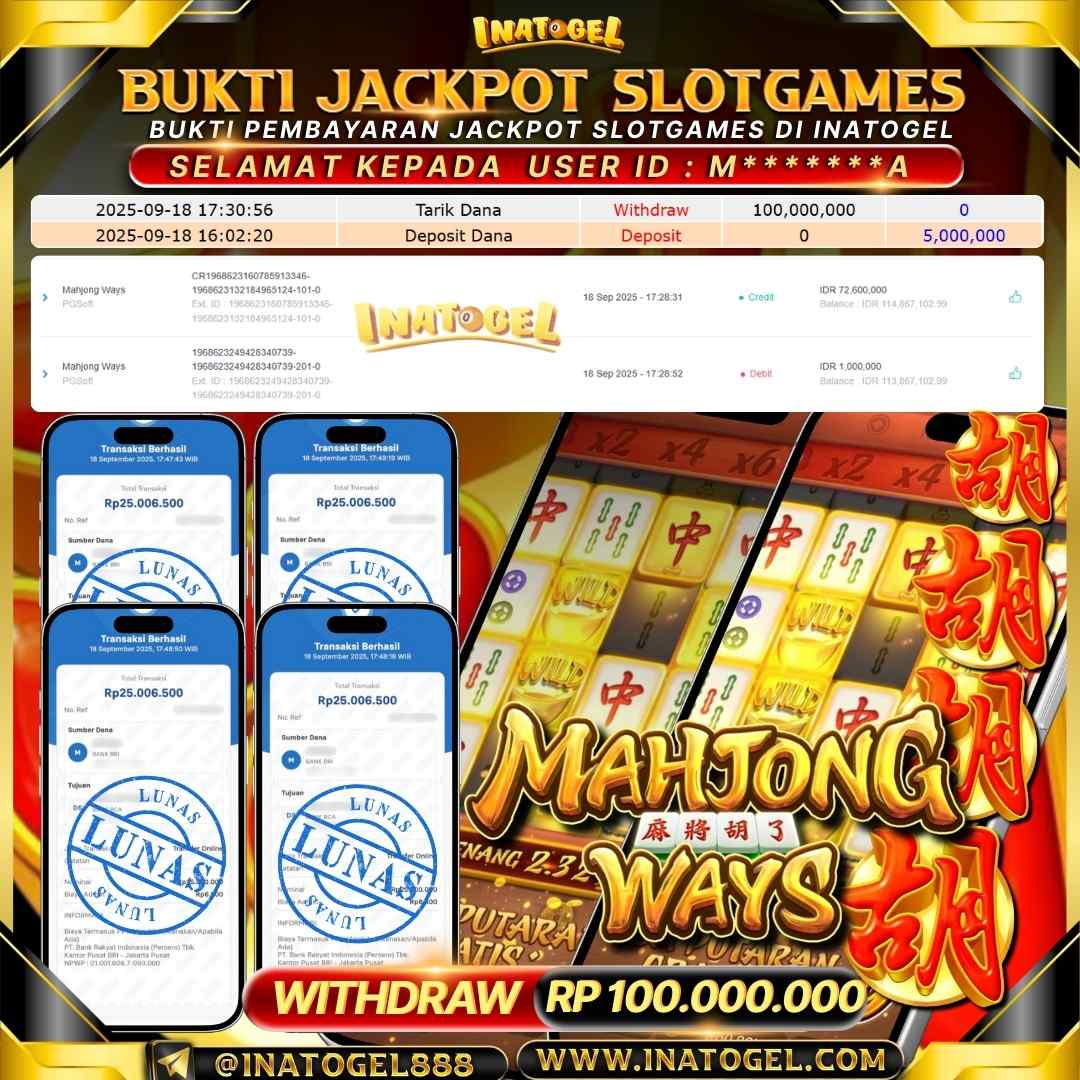 Inatogel Jackpot SlotGame Mahjong Ways Rp100,000,000