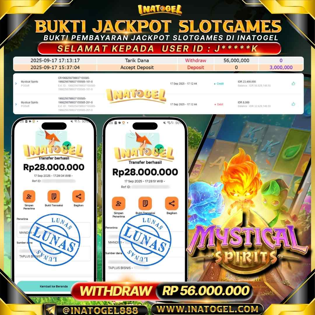 Inatogel Jackpot SlotGame Mystical Spirits Rp56,000,000