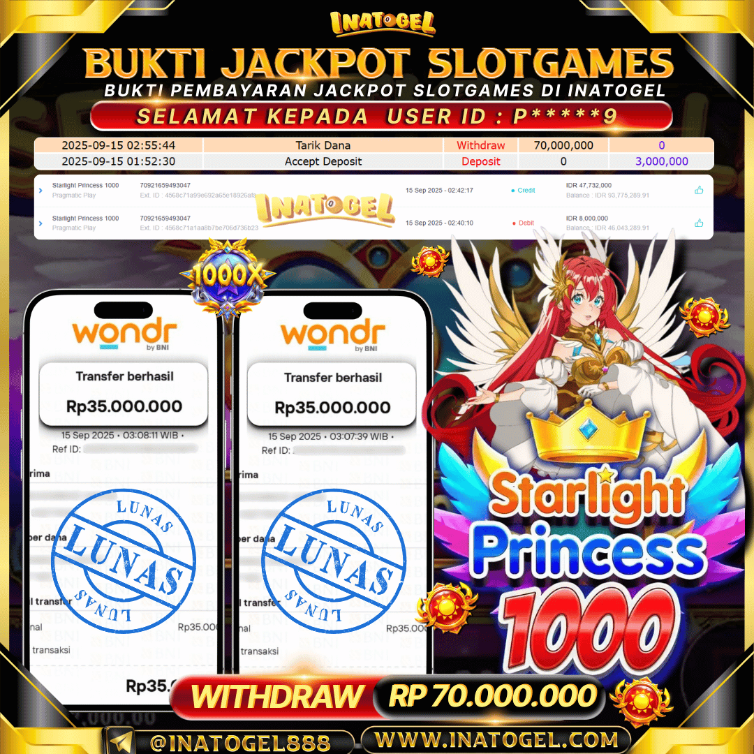 Inatogel Jackpot SlotGame Starlight Princess 1000 Rp70,000,000