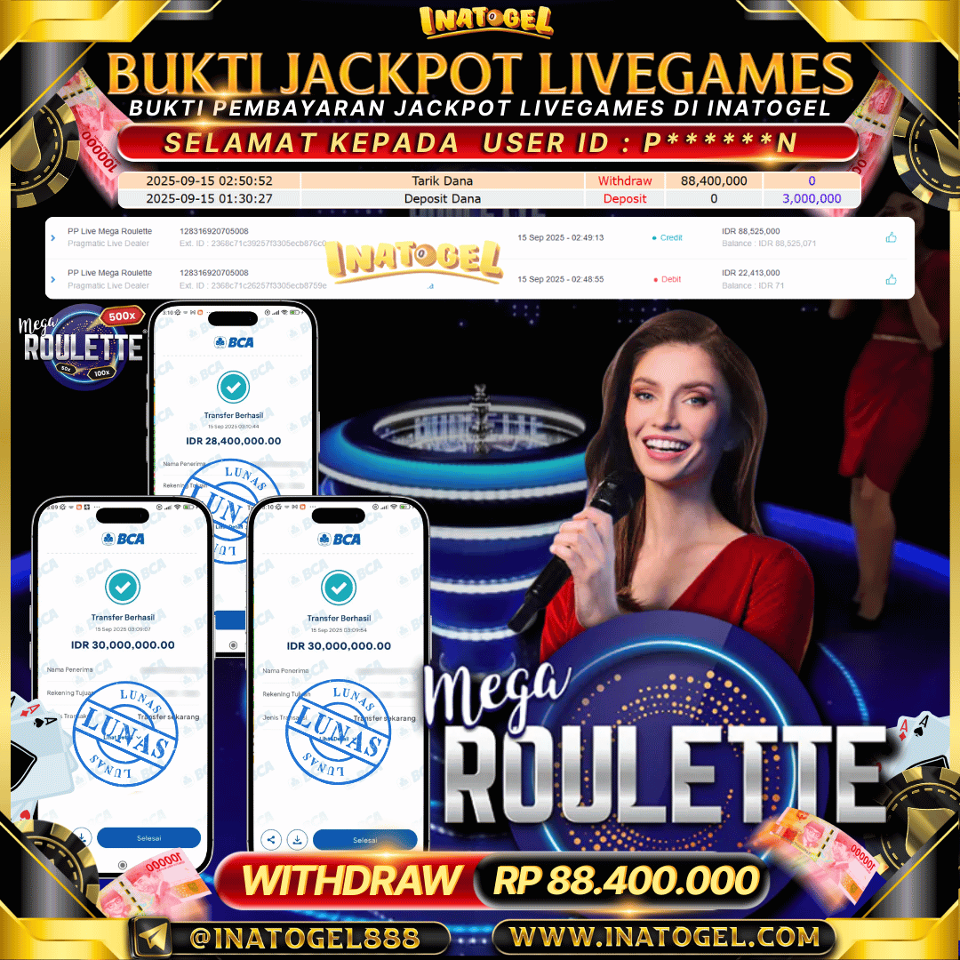 Inatogel Jackpot LiveGame Mega Roulette Rp88,400,000
