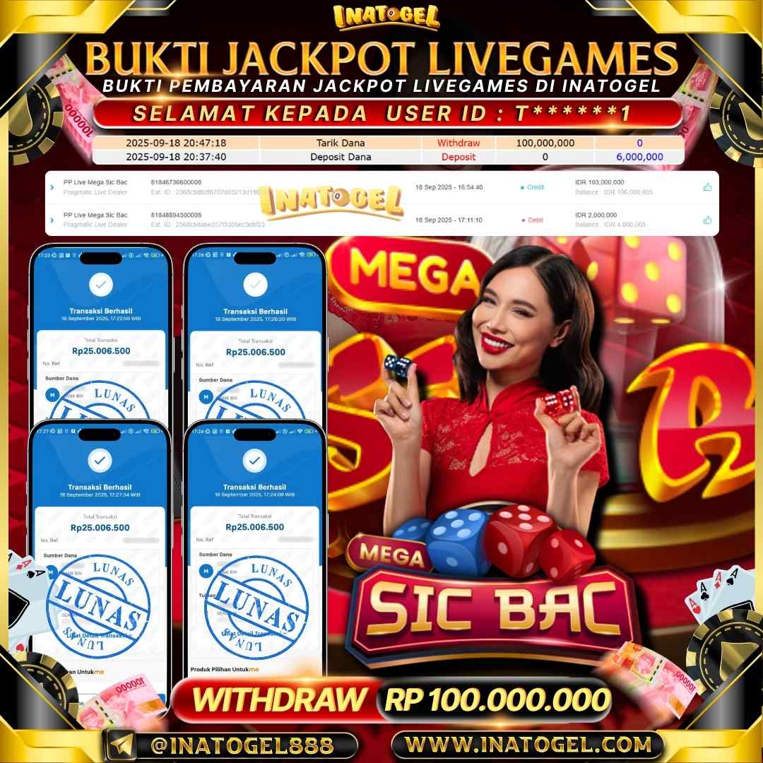 Inatogel Jackpot LiveGame Mega Sic Bac Rp100,000,000