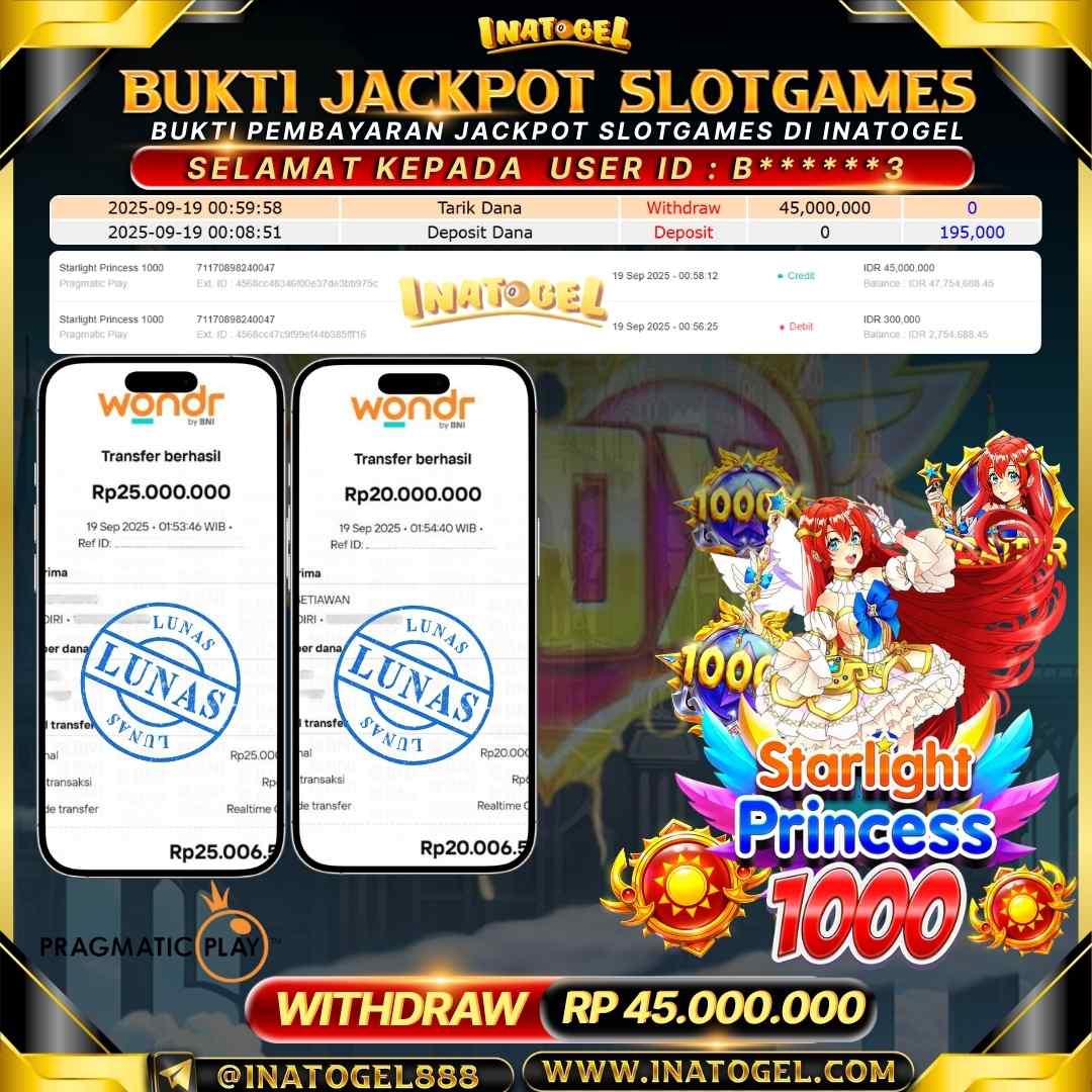Inatogel Jackpot SlotGame Starlight Princess 1000 Rp45,000,000