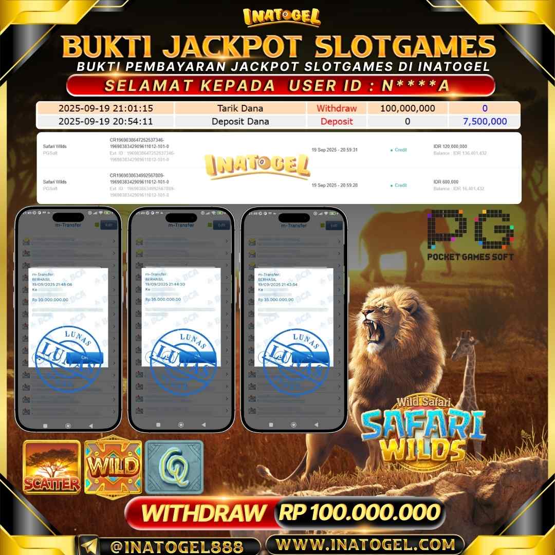 Inatogel Jackpot SlotGame Safari Wilds Rp100,000,000